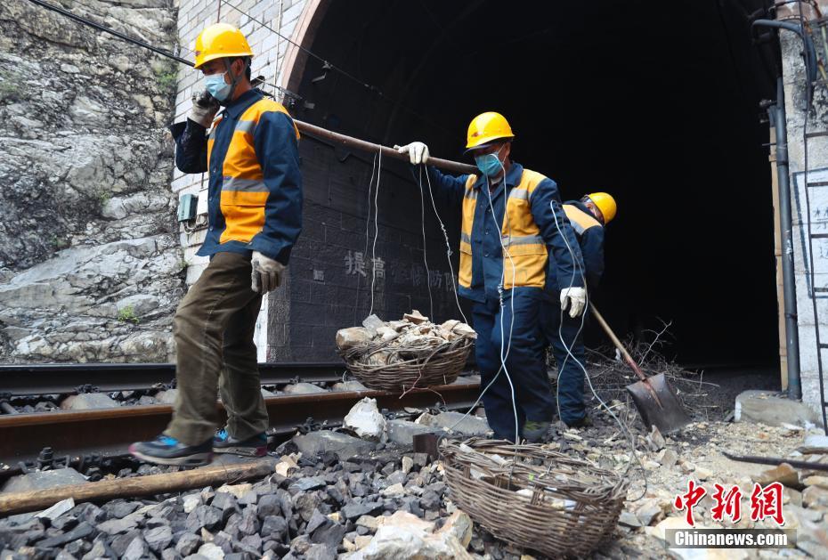 4月7日,铁路养护工人把清理出的碎石运出铁路沿线。丰沙线是晋煤外运重要通道,已有60余年历史,沿线山体结构复杂。为应对今年入汛提前,中国铁路北京局集团有限公司北京西工务段门头沟桥梁车间提前着手沿线防洪检查,建立危石档案,排除隐患。中新社记者 贾天勇 摄