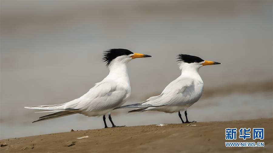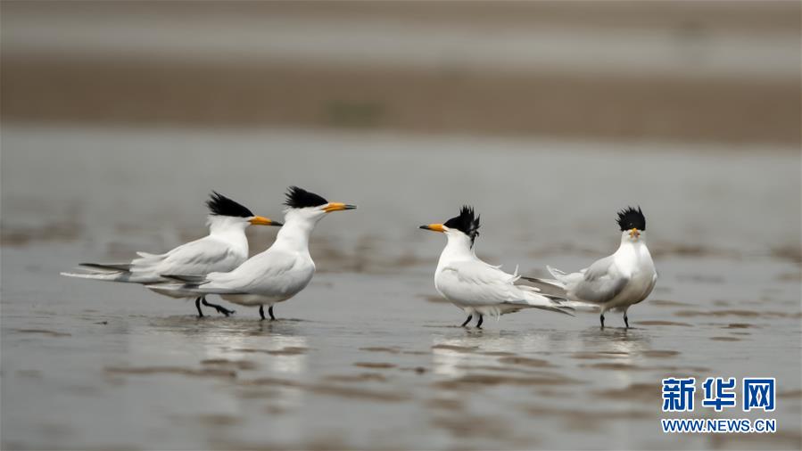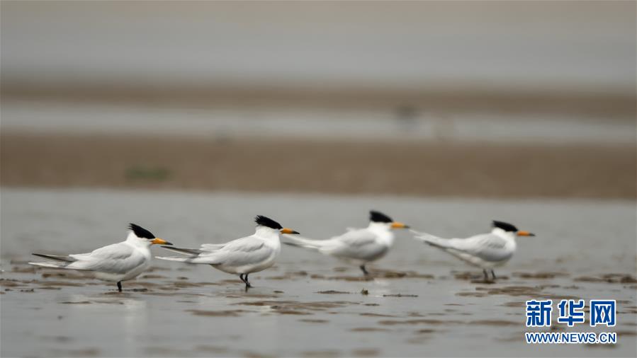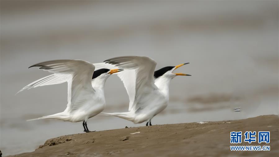 这是福建省闽江口沙洲上的“神话之鸟”——黑嘴端凤头燕鸥(4月7日摄)。新华社记者梅永存摄