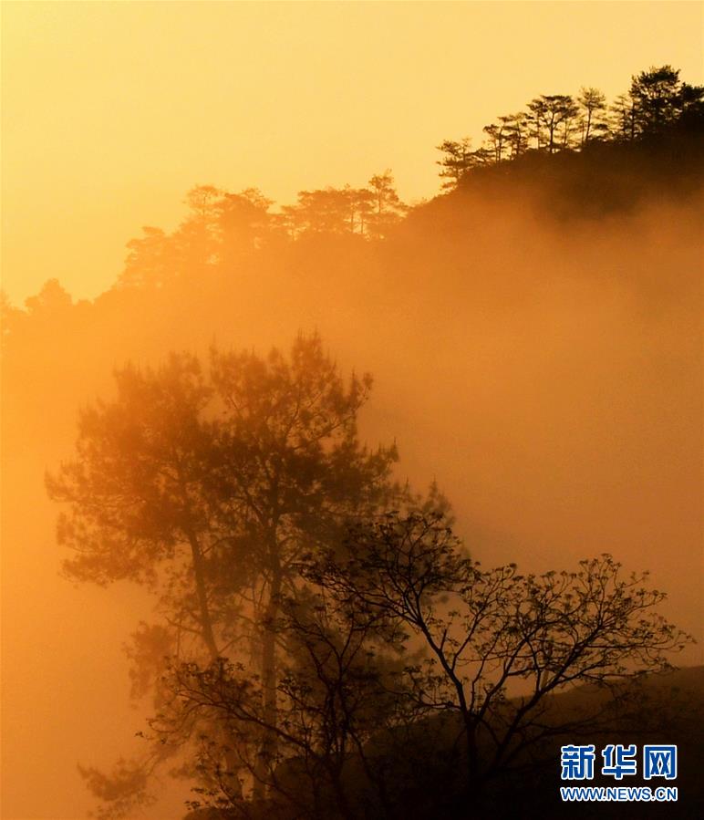 4月8日拍摄的沐浴在晨光中的武夷山星村镇茶山。 阳春三月,福建省武夷山风景区风光旖旎,春意盎然。 新华社记者魏培全摄
