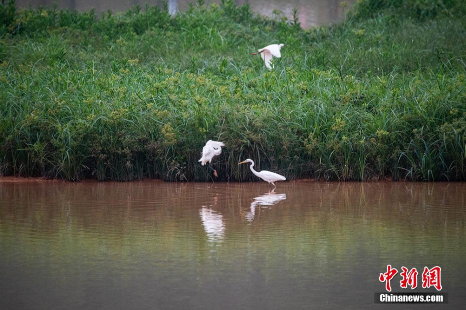 4月8日,在广西壮族自治区梧州市玫瑰湖湿地水面,成群的白鹭在飞翔嬉戏觅食,自由徜徉,它们和谐共处,相映成趣,形成一幅幅美丽的自然生态画卷。近年来,广西壮族自治区梧州市加大城乡生态环境治理及珍稀鸟类保护力度,生态环境不断改善,引来越来越多的鹭鸟栖息安家。 图为玫瑰湖湿地公园里的白鹭。 何华文 摄