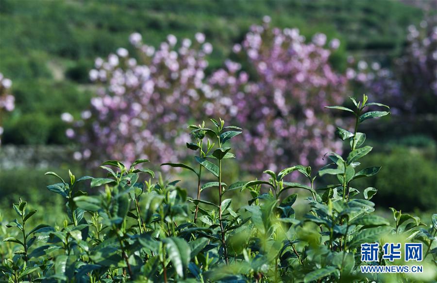 4月10日,里山镇安顶村的高山茶园内茶树与樱花相映成趣。新华社记者 徐昱 摄