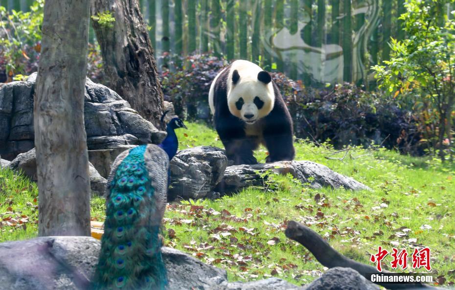4月22日,熊猫“春俏”在熊猫馆外场地活动。当日,武汉动物园恢复开放。疫情防控阶段每日限流1.5万人次,采取无接触的售票方式。园内露天动物场馆正常开放,大熊猫馆、河马馆、犀牛馆、狒狒馆等四个场馆仅开放室外区域。中新社记者 张畅 摄