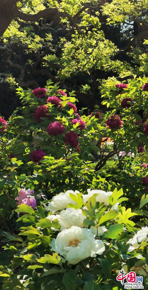每年4月中旬,北京景山公园牡丹花就会进入盛开季节。今年虽受疫情影响,但牡丹还是如期而至。一霎那,红墙下,松柏间,山路两边,花开满园。