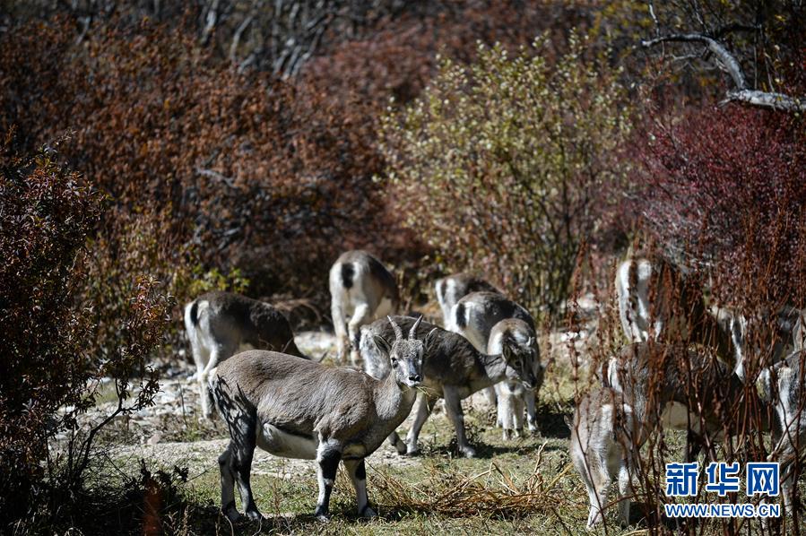 这是在四川亚丁国家级自然保护区拍摄的野生岩羊(2019年10月20日摄)。新华社记者 唐文豪 摄