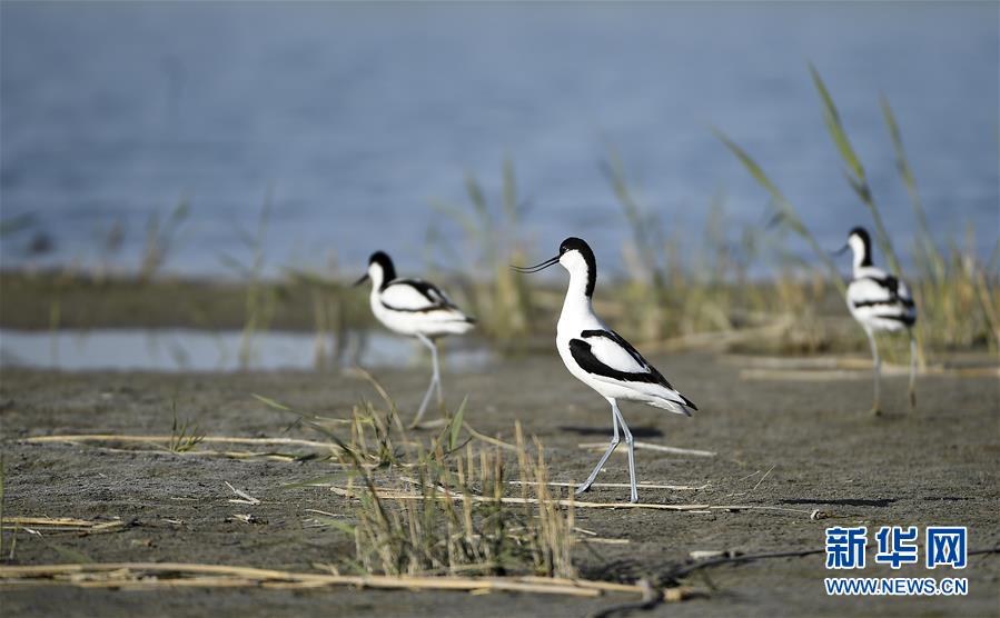 4月25日,反嘴鹬在沙湖景区觅食。 位于宁夏石嘴山市平罗县境内的沙湖景区是候鸟的重要迁徙繁殖地之一,每年3月至10月间,众多候鸟在此栖息、繁衍。第九届沙湖国际观鸟节将于五一假期拉开帷幕,以“云端”观鸟的形式为游客带来新的体验。 新华社记者 王鹏 摄