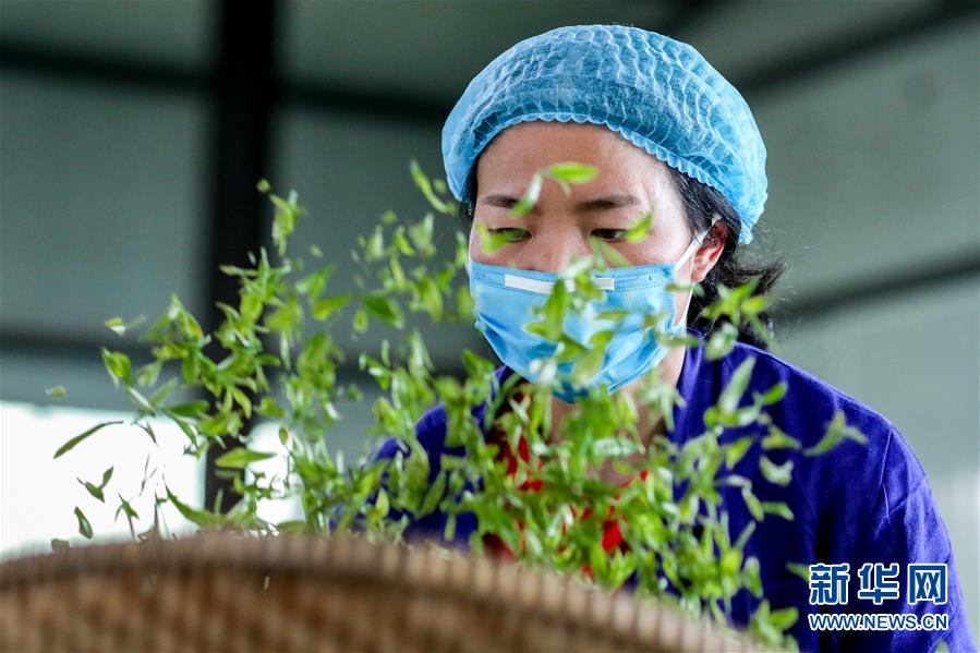 4月25日,工作人员在“扶贫茶园”内筛选茶青。 谷雨过后,在贵州省黔东南苗族侗族自治州丹寨县“扶贫茶园”,茶农抢抓农时赶制春茶。 丹寨县创新产业扶贫模式,鼓励社会公众线上认领茶园,再由茶园聘请当地贫困户务工,为贫困户创造茶园管理、采茶、制茶等就业机会,帮助贫困户增收。今年以来,“扶贫茶园”已接受线上预订600余亩,给当地700余名村民提供了就业机会。 新华社记者 欧东衢 摄