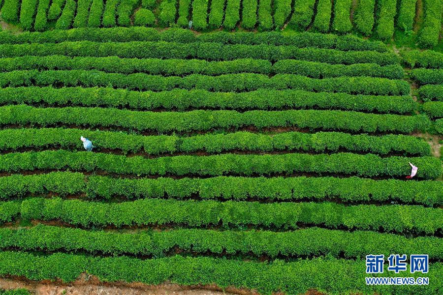 4月25日,茶农在“扶贫茶园”内采茶(无人机照片)。 谷雨过后,在贵州省黔东南苗族侗族自治州丹寨县“扶贫茶园”,茶农抢抓农时赶制春茶。 丹寨县创新产业扶贫模式,鼓励社会公众线上认领茶园,再由茶园聘请当地贫困户务工,为贫困户创造茶园管理、采茶、制茶等就业机会,帮助贫困户增收。今年以来,“扶贫茶园”已接受线上预订600余亩,给当地700余名村民提供了就业机会。 新华社记者 欧东衢 摄