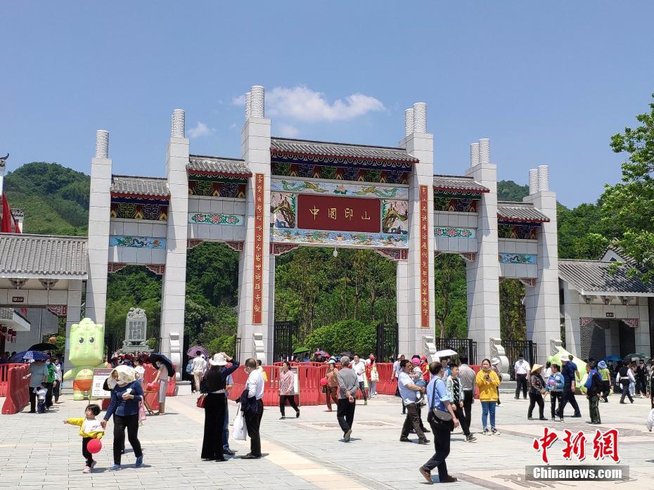 4月29日,位于湖南省常宁市的中国印山景区开园。中国印山景区以摩岩的形式,把中国数千年的书法、印章精品篆刻于一山,共汇集了4800多枚形态各异的印章图案。图为中国印山景区大门。中新社记者 王昊昊 摄