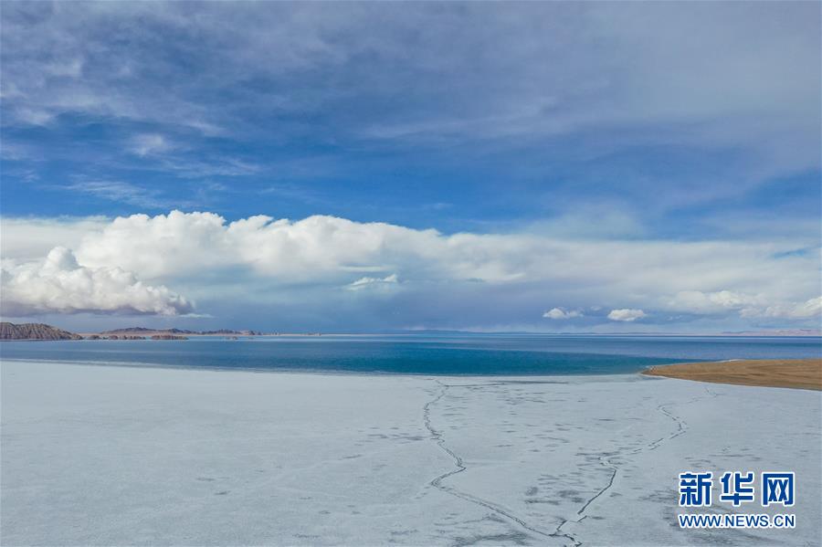 正在“解冻”的色林错湖面(4月29日摄,无人机照片)。 色林错位于西藏北部的那曲市,是西藏最大的湖泊。4月底的藏北高原初显春色,色林错的湖面也渐渐“解冻”。湖水、蓝天、白云融为一体,牧民赶着羊群从湖边经过,呈现出生机勃勃的雪域春景。 新华社记者田金文摄