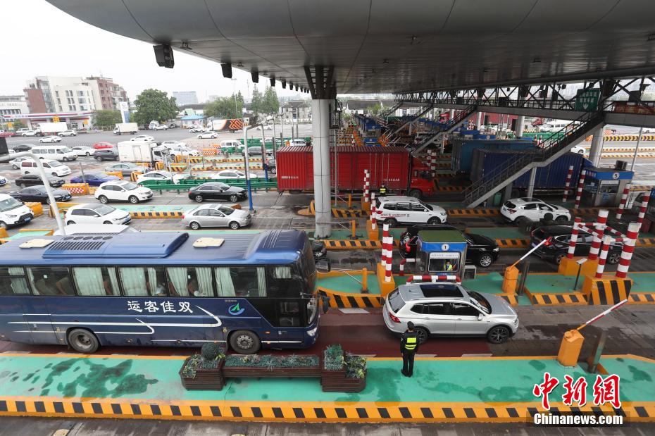 上海“五一”高速出行遇高峰 “一车一杆”模拟收费模式