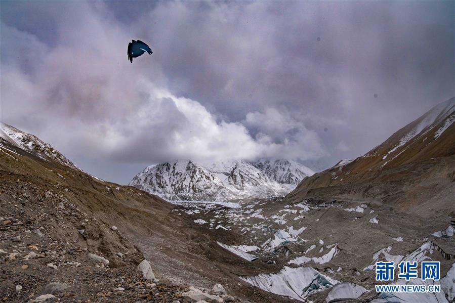 位于珠穆朗玛峰脚下海拔5400米左右的中绒布冰川(4月30日摄)。 位于珠穆朗玛峰脚下海拔5400米左右的中绒布冰川,巍峨壮观,冰塔林托起世界最高峰,让人叹为观止。 新华社记者 孙非 摄