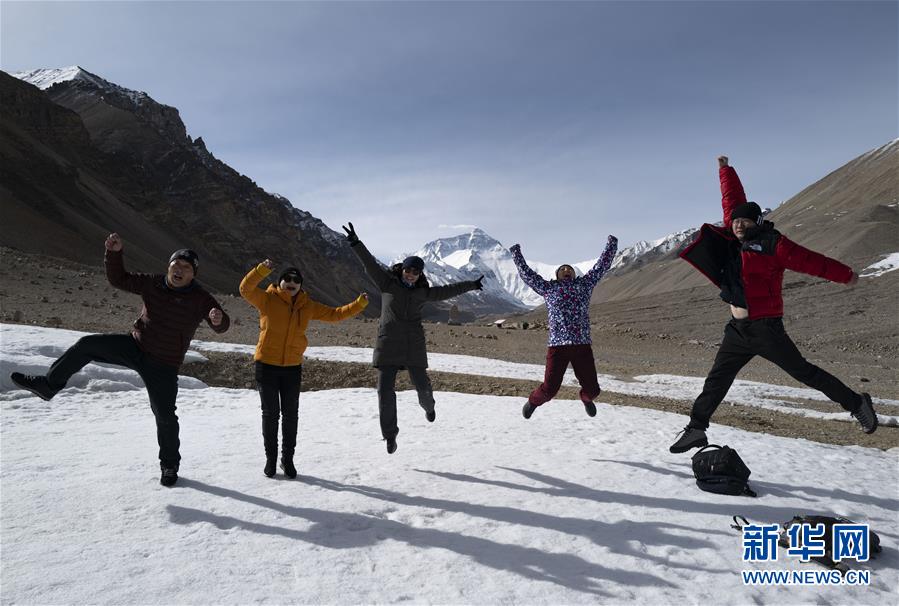 5月5日,游客在珠峰景区内留影。 西藏自治区日喀则旅游发展局发布,从2020年5月1日起恢复开放国家4A级旅游景区珠穆朗玛国家公园,游客可到距珠峰大本营2公里外的绒布寺附近欣赏珠峰美景。同时,珠峰景区在2020年度对全国医护人员实行免票活动,医护人员可持医师资格证、护士资格证与身份证免票游览。 新华社记者 普布扎西 摄