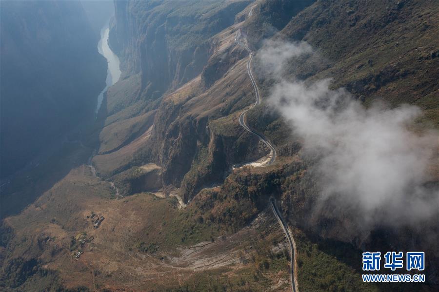 这是布拖县阿布洛哈村通村公路(2019年12月29日摄,无人机照片)。新华社记者 江宏景 摄