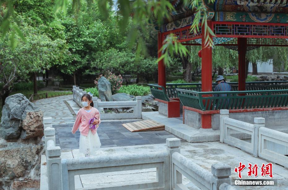 小游客在园内参观游览。中新社记者 贾天勇 摄