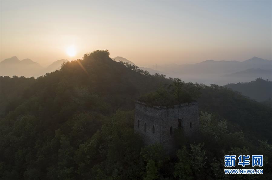 这是5月9日拍摄的河北遵化市境内的洪山口长城(无人机照片)。 当日清晨,河北省遵化市境内的长城云雾缭绕,美景如画。 新华社记者 杨世尧 摄