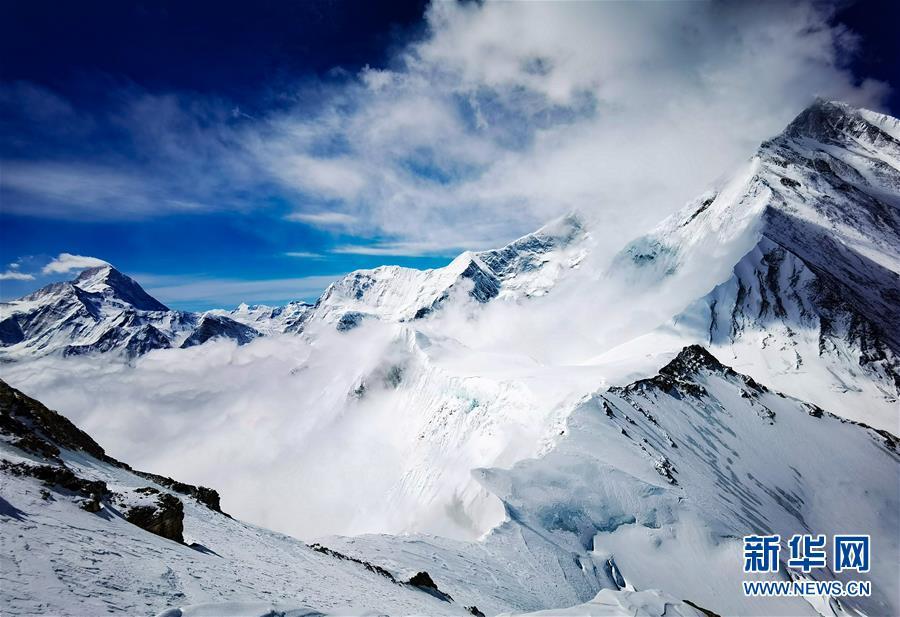 从珠峰海拔7028米以上拍摄的壮美景色(5月12日摄)。从珠峰海拔7028米的一号营地继续向上攀登,沿途景色十分壮美。 新华社特约记者 扎西次仁 摄