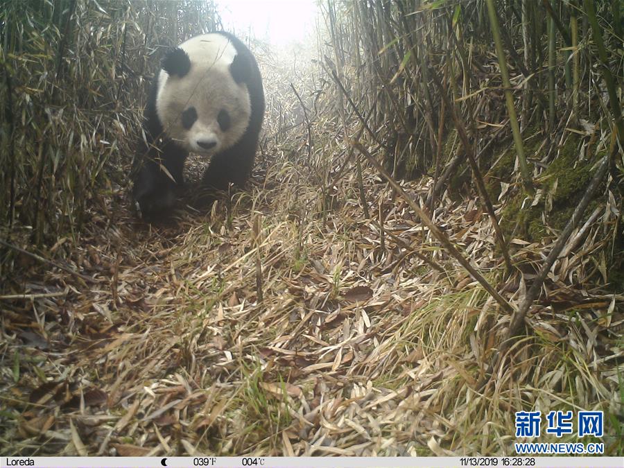 这是在四川九顶山省级自然保护区用红外线相机拍摄的大熊猫活动场景(2019年11月13日摄)。 5月11日,四川九顶山省级自然保护区绵竹管理站从野外取回的40台红外相机中,发现了野生大熊猫活动影像。九顶山自然保护区位于龙门山脉,是我国大熊猫生态走廊上的重要一环。 新华社发