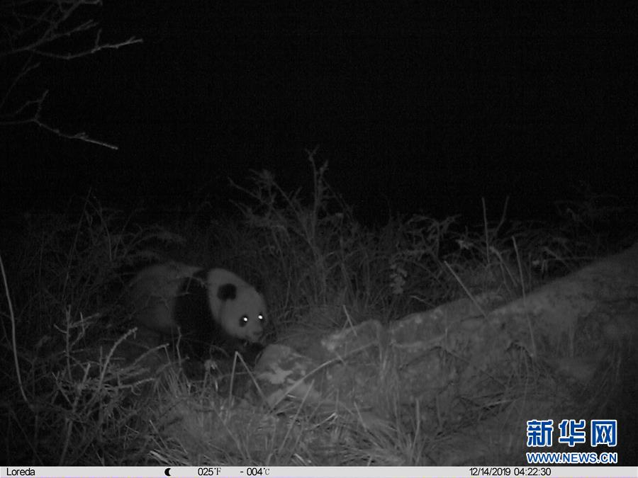 这是在四川九顶山省级自然保护区用红外线相机拍摄的大熊猫活动场景(2019年12月14日摄)。 5月11日,四川九顶山省级自然保护区绵竹管理站从野外取回的40台红外相机中,发现了野生大熊猫活动影像。九顶山自然保护区位于龙门山脉,是我国大熊猫生态走廊上的重要一环。 新华社发