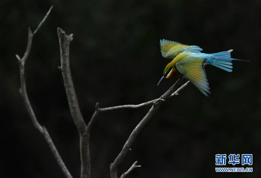 这是5月19日在厦门五缘湾栗喉蜂虎自然保护区拍摄的栗喉蜂虎。 近日,大批栗喉蜂虎来到厦门五缘湾栗喉蜂虎自然保护区栖息、繁殖。 新华社记者 魏培全 摄
