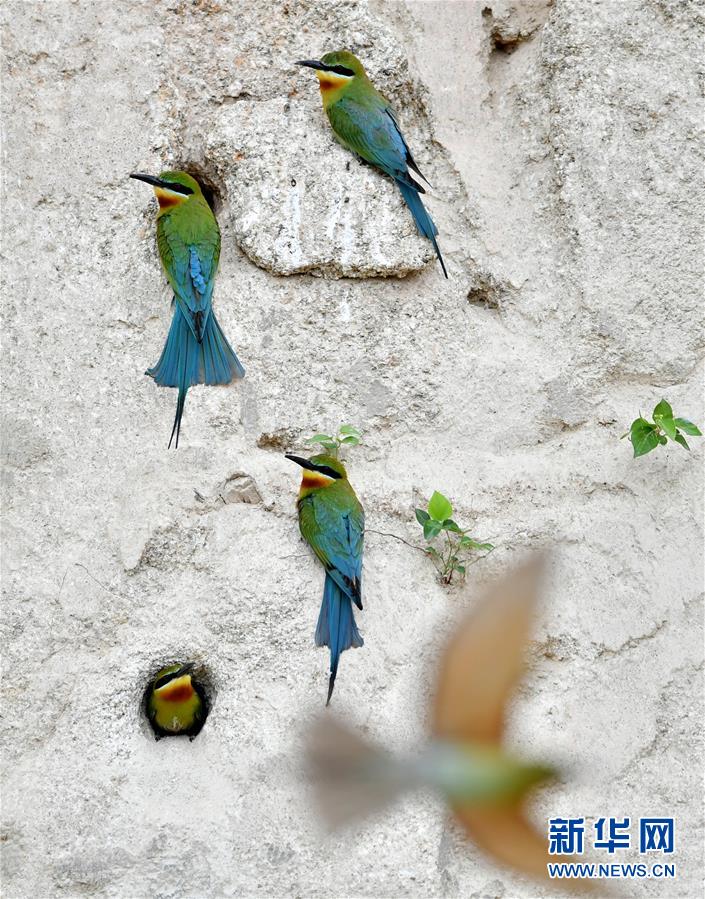 这是5月19日在厦门五缘湾栗喉蜂虎自然保护区拍摄的栗喉蜂虎。 近日,大批栗喉蜂虎来到厦门五缘湾栗喉蜂虎自然保护区栖息、繁殖。 新华社记者 魏培全 摄