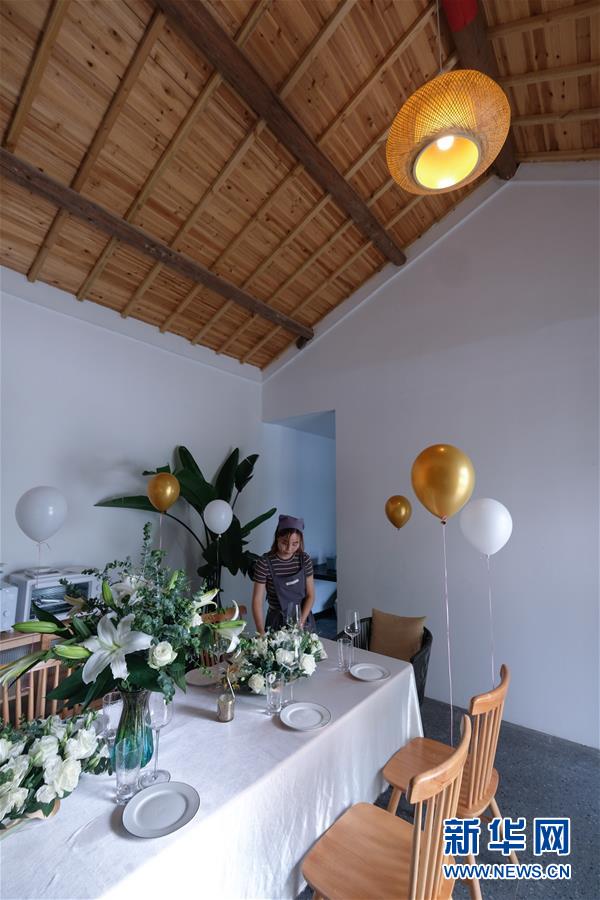 5月28日,湖州市织里镇庙兜村“三叶屋”民宿工作人员在整理客厅。该民宿由旧屋改造而成,集餐饮、书屋、住宿于一体。 近年来,浙江省湖州市织里镇南太湖沿岸的义皋村、伍浦村、庙兜村等水乡村落在美丽乡村建设中突出“一村一品”,利用滨湖风光、溇港资源和乡村文化,打造各具特色的水乡民宿,促进美丽经济发展,助力农民增收。 新华社记者 徐昱 摄