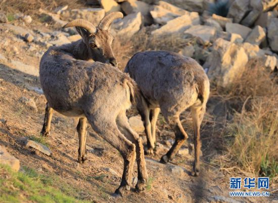 5月26日拍摄的甘德尔山岩羊。 岩羊是国家二级保护动物,主要生活在高山裸岩地带,可在悬崖峭壁上攀爬跳跃,被称为“岩壁上的精灵”。内蒙古自治区乌海市境内的甘德尔山上生活着一群岩羊,随着当地生态保护力度加大,它们经常从山顶来到山脚下的草坡吃草、喝水,完全不介意来往的车辆和行人。 新华社记者 贾立君 摄