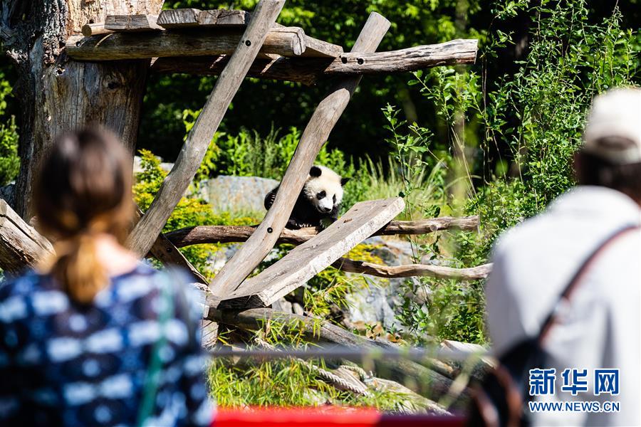 5月28日,在德国柏林动物园,游客观看一只大熊猫幼崽。 德国柏林动物园因新冠肺炎疫情闭园一个多月后于4月28日重新开门迎客。尽管动物园仍然采取严格限制入园人数等防疫措施,但仍有不少游客来到熊猫馆观看旅德大熊猫及它们诞下的双胞胎幼崽。 新华社发(张平摄)