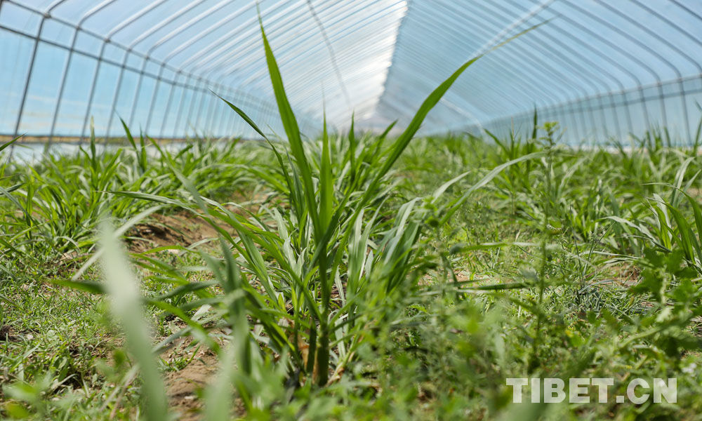 图为扎囊现代农牧产业园内种植的牧草。在让当地沙化土地改绿洲的同时,为当地牛羊养殖提供饲草,解决当地牛羊冬季缺少草料的问题。摄影:赵耀