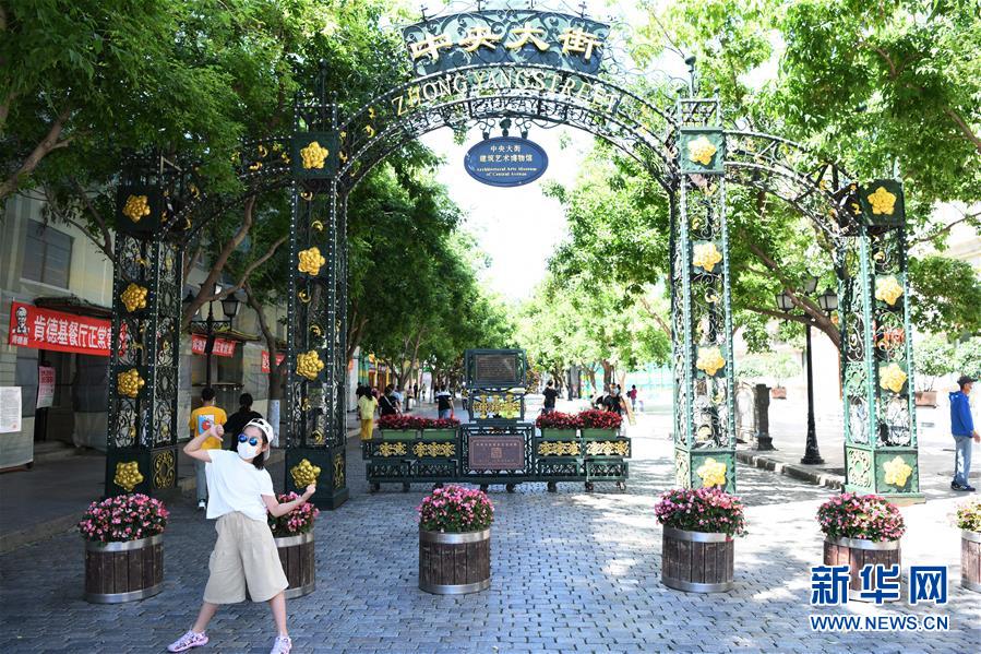 6月16日,一名小朋友在改造施工中的中央大街的街口留影。 今年3月启动的哈尔滨百年历史老街中央大街改造提升项目,目前正在加紧施工中。哈尔滨将通过设施提档和业态整体升级等工作,把中央大街打造成极具特色、文旅融合的“中国欧陆风情街”。改造提升项目预计于今年9月底完工。 新华社记者 王建威 摄