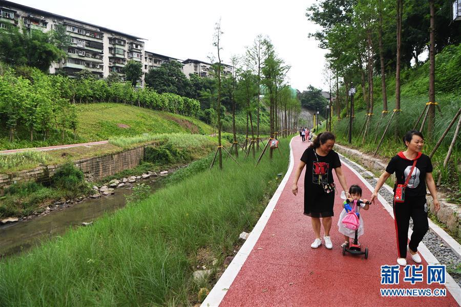 6月18日,市民在清水溪岸边散步、玩耍。新华社记者王全超摄