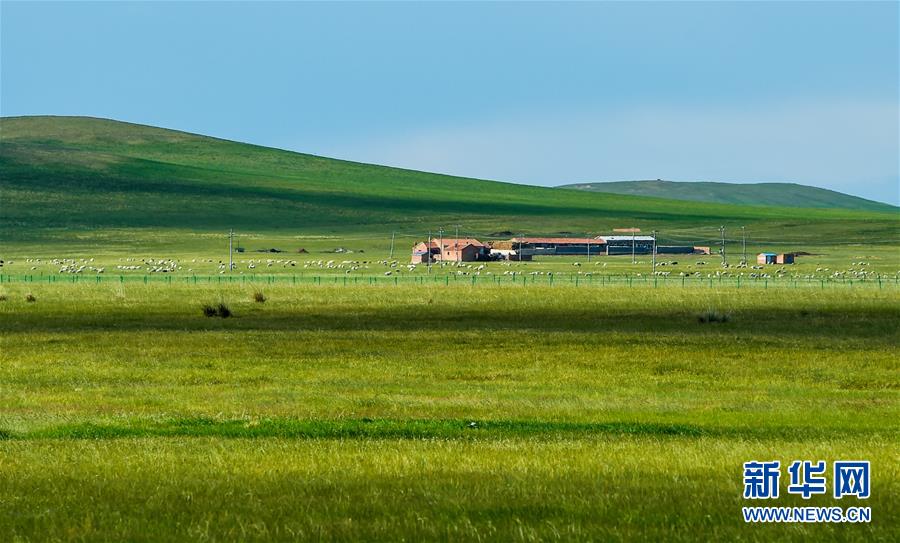 这是锡林郭勒盟乌拉盖草原风光(6月17日摄)。 初夏时节,内蒙古中部的锡林郭勒大草原风景如画。 新华社记者 连振 摄