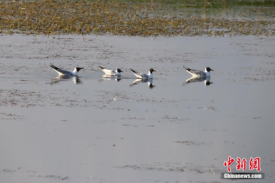 18日,渔鸥在巴里坤草原湿地的水面上游弋。 张建刚 摄