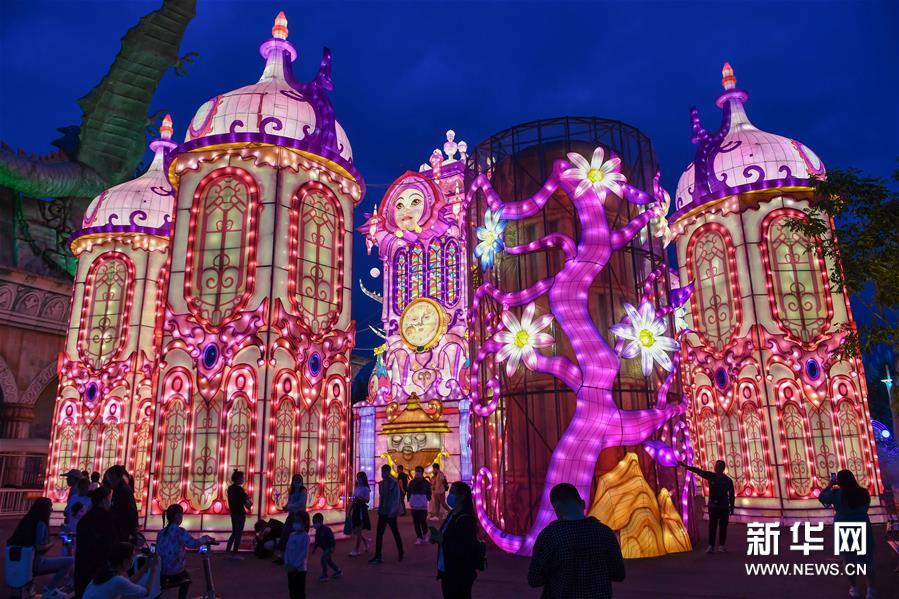 6月26日,游客在消夏灯会上赏灯游览。端午小长假期间,在吉林省长春市长影世纪城举办的“2020长春消夏灯会”吸引了众多游客前来观赏游览。新华社记者 张楠 摄