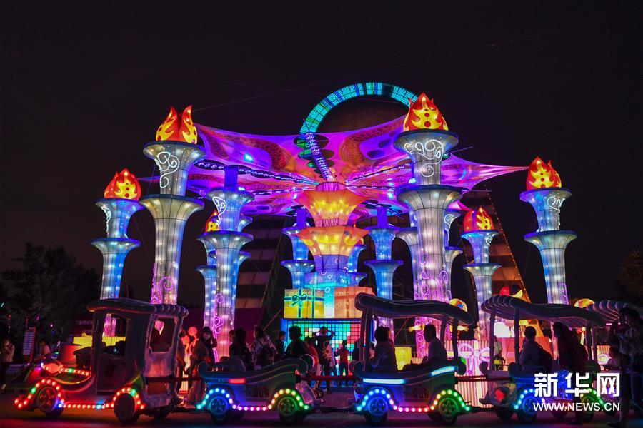 6月26日,游客在消夏灯会上赏灯游览。新华社记者 张楠 摄