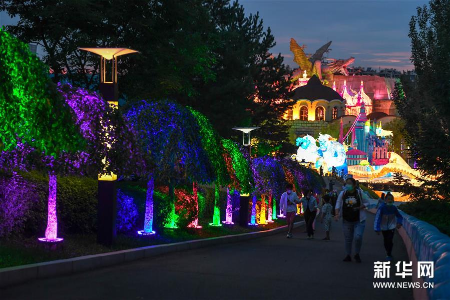 6月26日,游客在消夏灯会上赏灯游览。新华社记者 张楠 摄