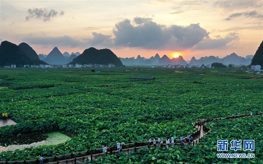 连日来,广西柳州市柳江区百朋镇万亩荷塘种植的春季莲藕喜获丰收,各色荷花竞相绽放,吸引游客前来赏玩。百朋镇是柳州市柳江区双季莲藕的主产区,双季莲藕种植面积达3.2万亩。同时,当地积极发展荷花景区生态旅游休闲项目,260多户贫困户通过莲藕种植及旅游产业实现脱贫。 新华社发(黎寒池 摄)