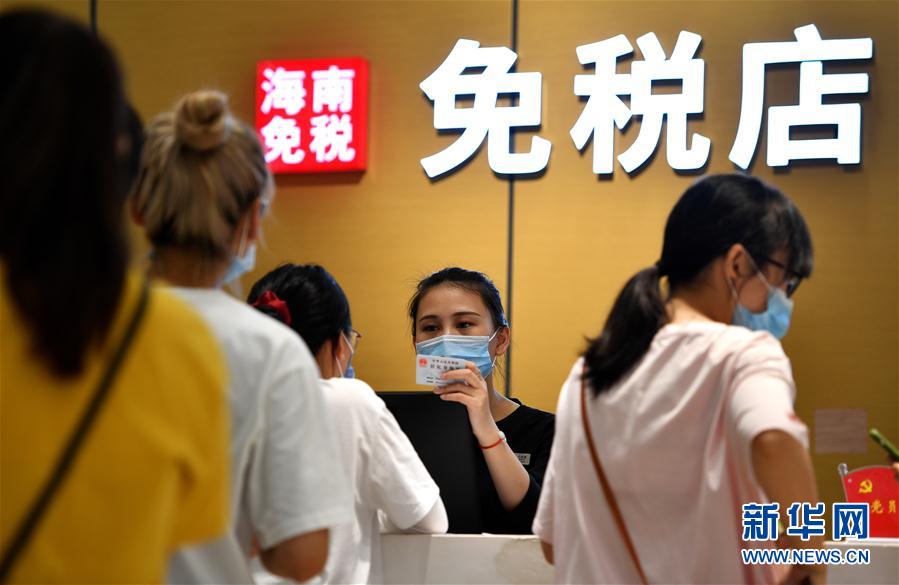 6月29日,海口日月广场免税店工作人员在工作。 当日,财政部、海关总署、税务总局联合发布《关于海南离岛旅客免税购物政策的公告》。自2020年7月1日起,海南离岛旅客每年每人免税购物额度从3万元提高至10万元,不限次数;扩大免税商品种类,增加电子消费产品等7类商品。 新华社记者 郭程 摄