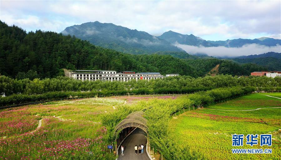 7月2日,市民在位于留坝县城的金水湾花海游玩。 近日,陕西省汉中市留坝县金水湾花海的各类鲜花次第绽放,绚丽缤纷。 新华社记者 刘潇 摄