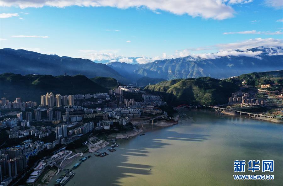 7月2日拍摄的重庆巫山县城一带景象(无人机照片)。 雨后初霁,重庆巫山县城及巫峡口一带景色如画。 新华社记者 王全超 摄