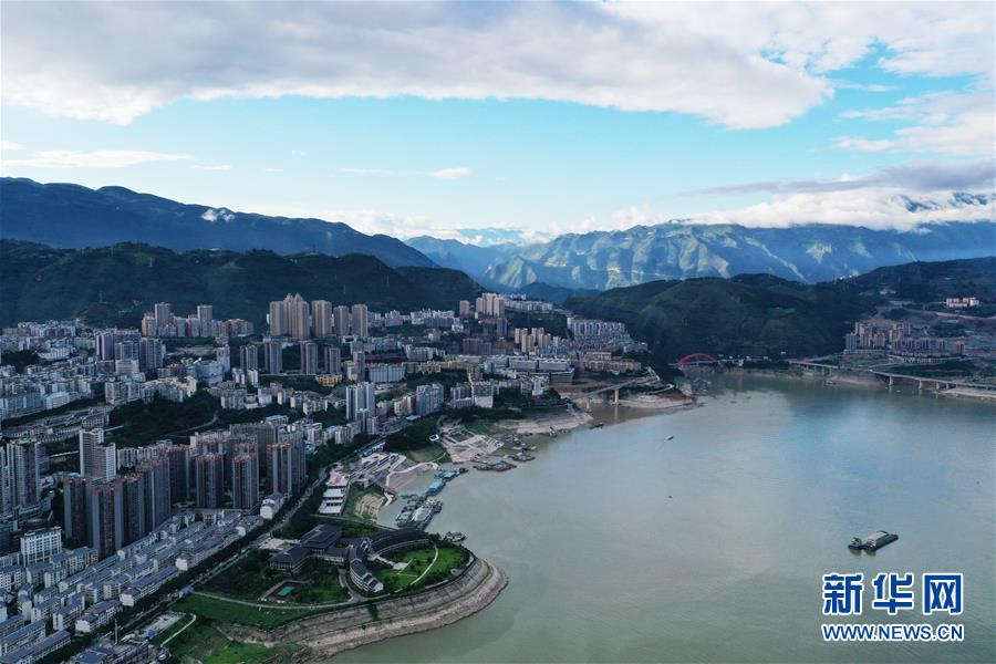 7月2日拍摄的重庆巫山县城一带景象(无人机照片)。 雨后初霁,重庆巫山县城及巫峡口一带景色如画。 新华社记者 王全超 摄