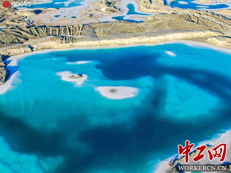 大柴旦翡翠湖宛如仙境 颜色如同翡翠般翠绿