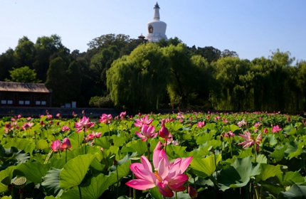 北京:北海公园现“荷花映白塔”盛景