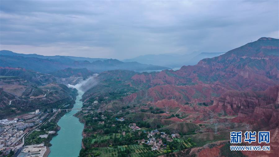 这是7月9日拍摄的位于青海省海东市化隆回族自治县境内的黄河及沿岸景观(无人机照片)。 近年来,随着生态环境改善,青海省海东市化隆回族自治县境内的黄河两岸披上绿装。空中俯瞰,青山碧水,在蓝天映衬下形成一幅美丽画卷。 新华社记者 吴刚 摄