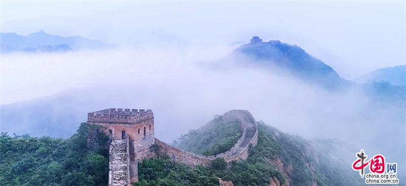 夏季,金山岭长城开启了云海模式,出现云雾天气多达十几次,美轮美奂,如同仙境。