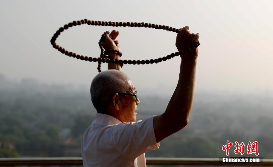 7月20日,市民在北京景山公园晨练。当天零时起,北京市突发公共卫生事件应急响应级别由二级调至三级。中新社记者 杜洋 摄