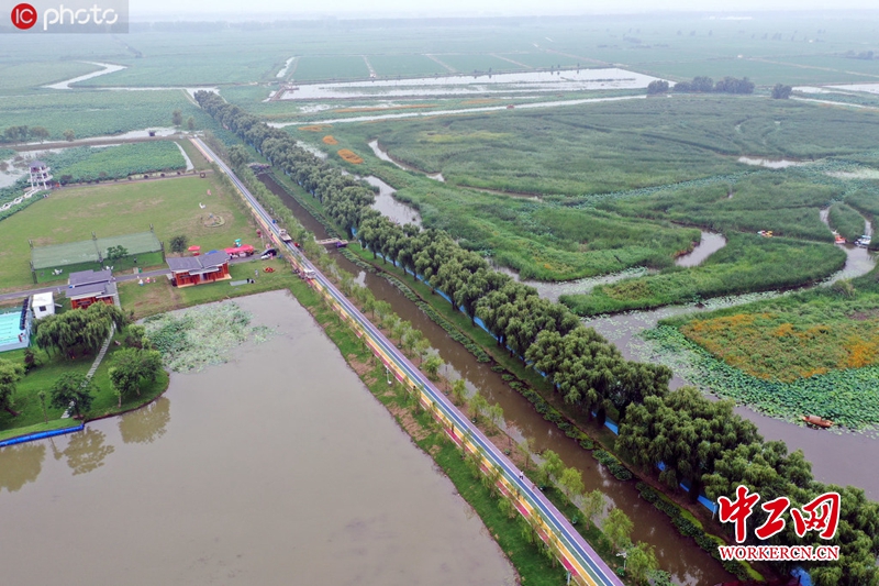 2020年7月21日,游客在江苏省扬州市宝应县射阳湖镇荷园花海的荷塘景观带中划船畅游。大暑时节,江苏省扬州市宝应县射阳湖镇的万亩荷园开始对游人开放,荷园内180多种荷花竞相绽放,莲花飘香,美不胜收,吸引了许多游客。近年来,宝应县射阳湖镇依托水资源的优越,大力发展生态荷藕种植,将乡村生态建设与文化旅游融合,助力乡村振兴农民增收。