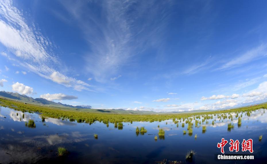 若尔盖花湖位于四川省阿坝藏族羌族自治州若尔盖县境内,是热尔大坝草原上的一个天然海子,天地之间,绿草茵茵,繁花似锦,草地中星罗棋布地点缀着无数小湖泊,湖水碧蓝,宛如一颗镶嵌在213国道边的宝石,吸引众多游客前来观光。图为7月21日拍摄的花湖风光。