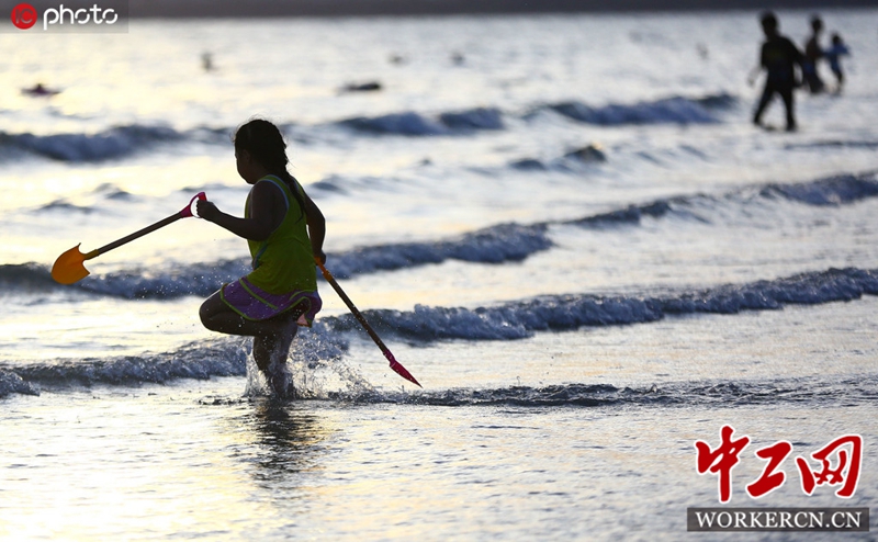 2020年7月22日,海南三亚,一小朋友在三亚市三亚湾戏水。图片来源:不二/IC photo