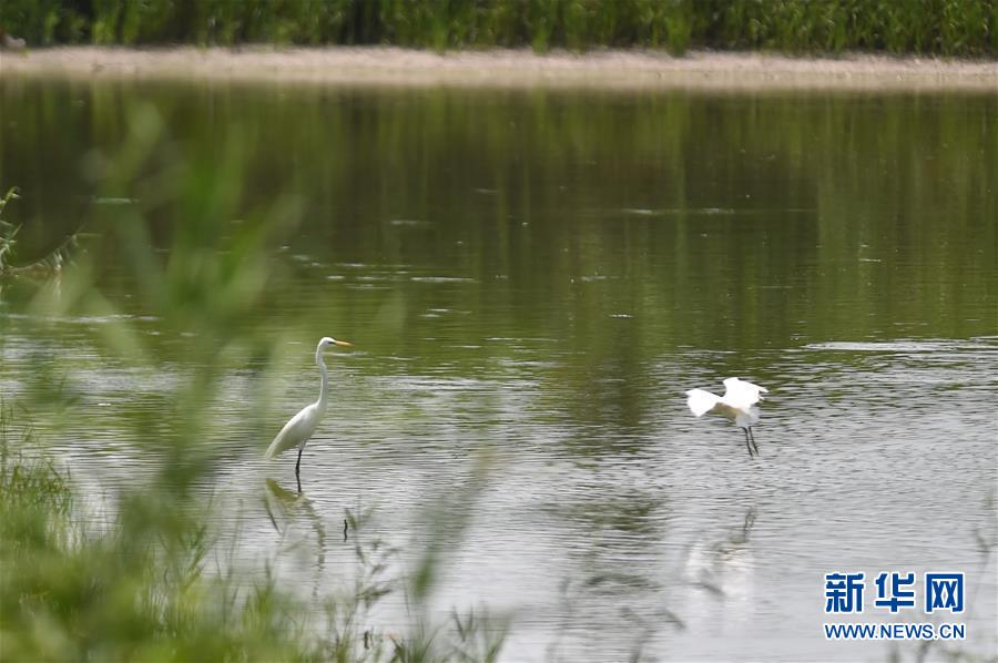 7月23日拍摄的天津大黄堡湿地自然保护区内的白鹭。