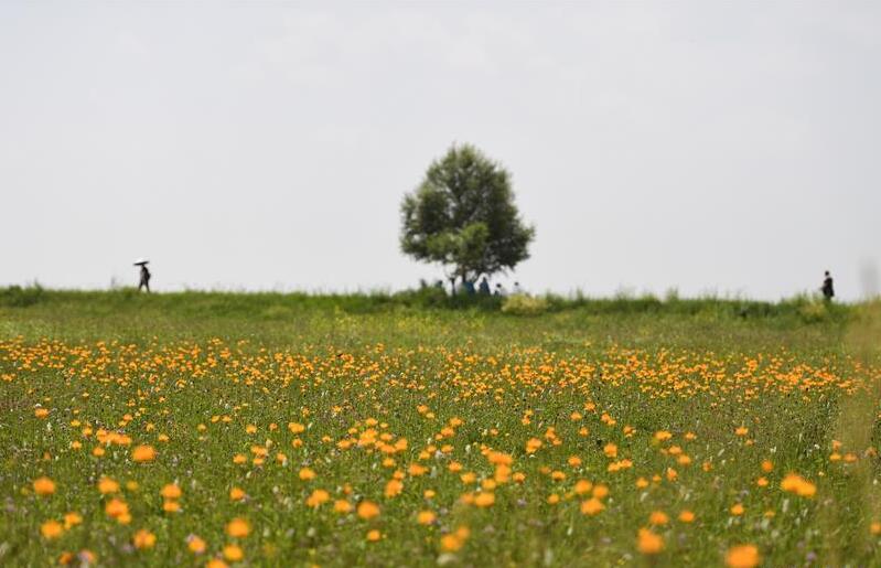 这是7月22日拍摄的门源回族自治县的油菜花田(无人机照片)。 时下正值高原油菜花竞相绽放的季节,在青海省海北藏族自治州门源回族自治县,金黄色的油菜花在高原蓝天和云雾映衬下形成一幅壮丽画卷,吸引游客前来观赏。 新华社记者 吴刚 摄